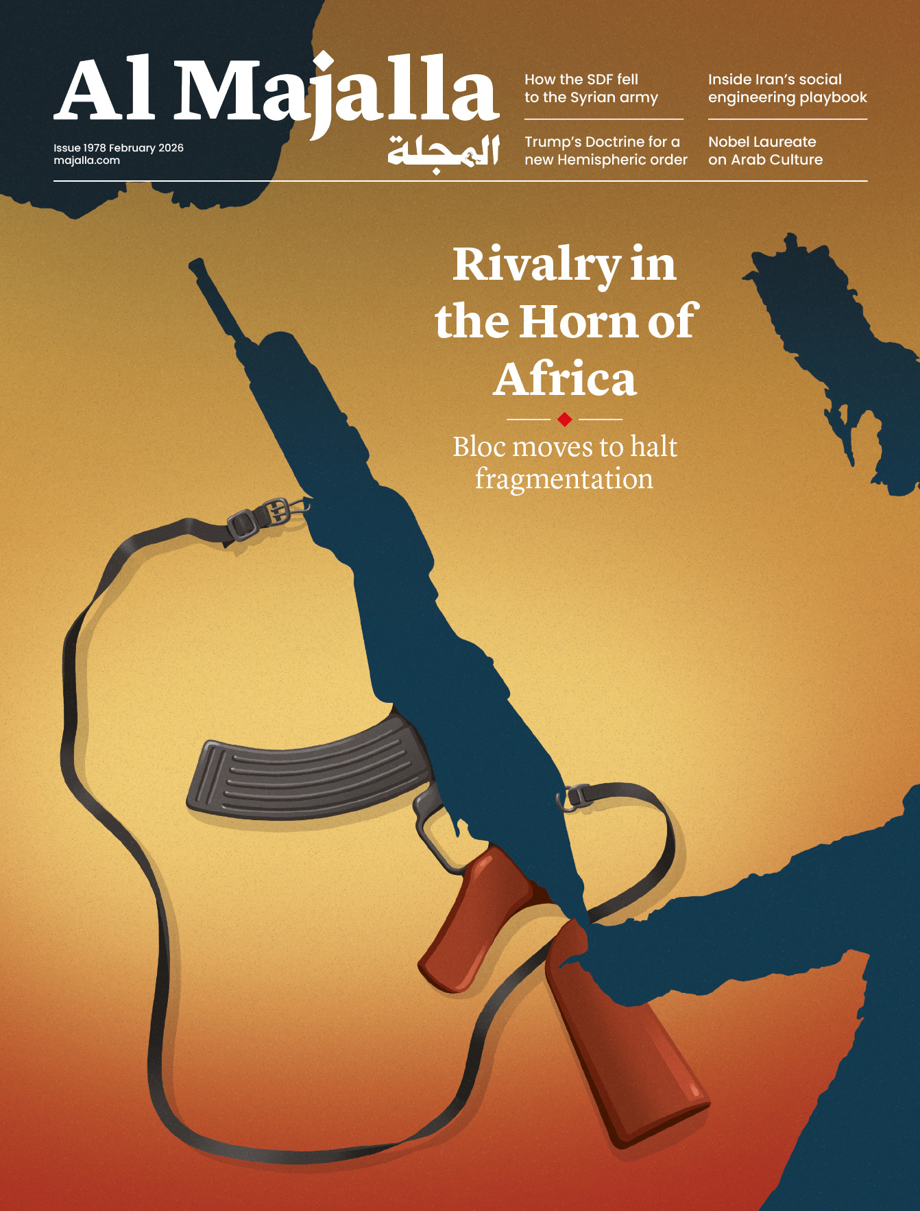 Cover illustration for Al Majalla on the conflict in The Horn of Africa, in and around the Red Sea.