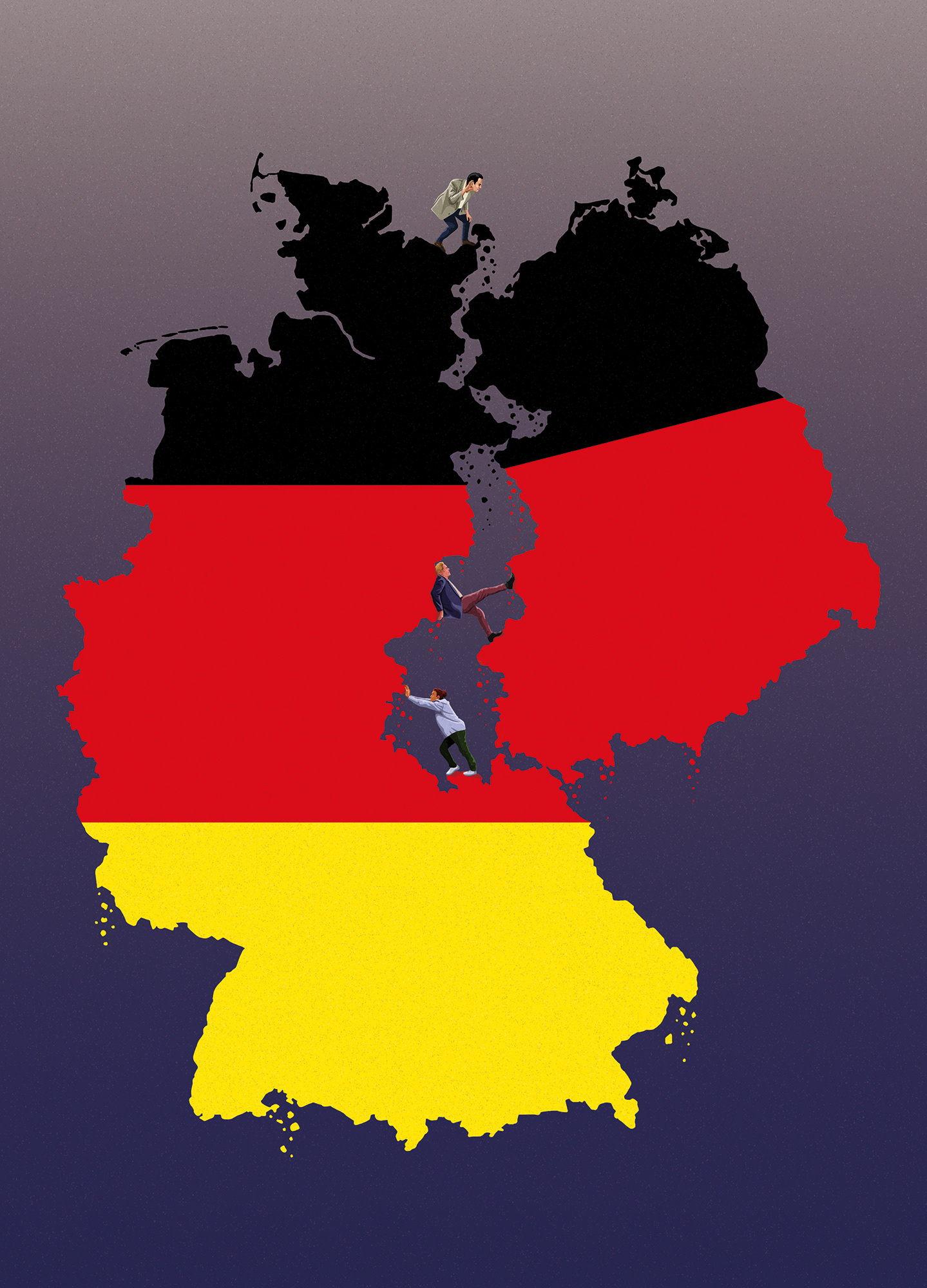 For The Berliner Zeitung. The cover illustration for their feature on Reunification Day in Germany and the complicated relationship between West and East.