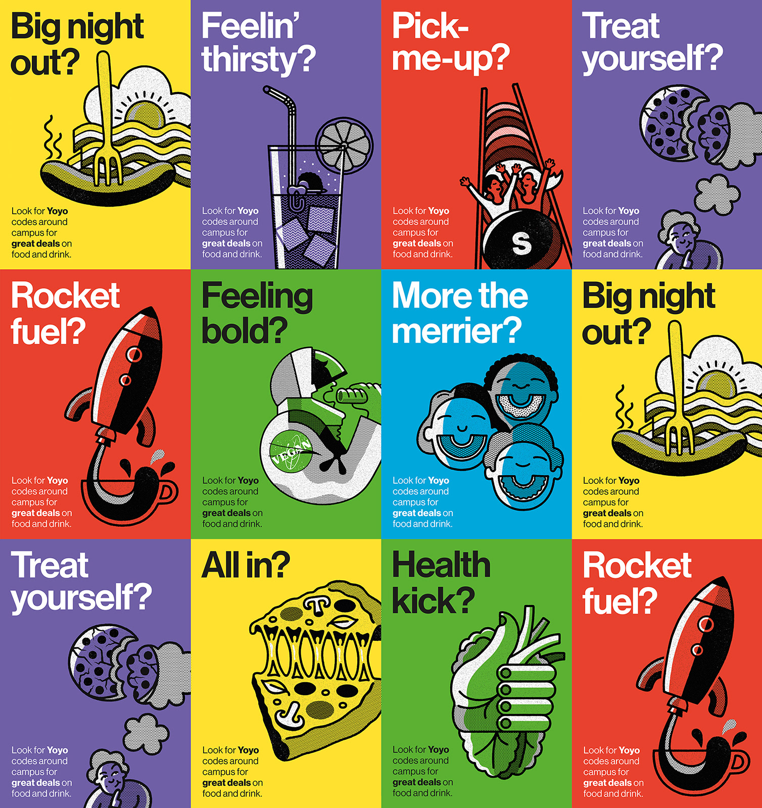A campaign for food and hospitality company Compass UK which was used in advertising across universities during Freshers Week. With agency Mr. D.