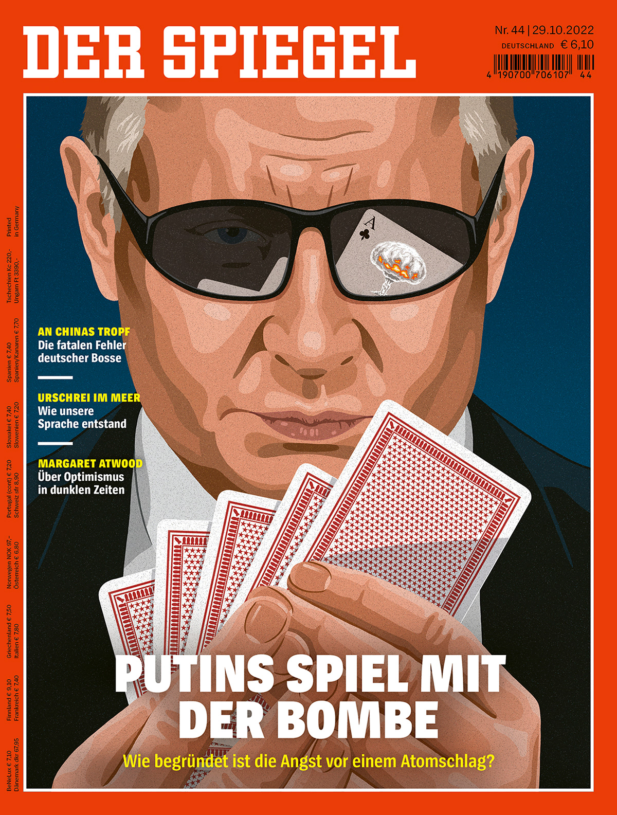 The cover illustration for Der Spiegel. "Putin's game with the bomb. How justified is the fear of a nuclear strike?"