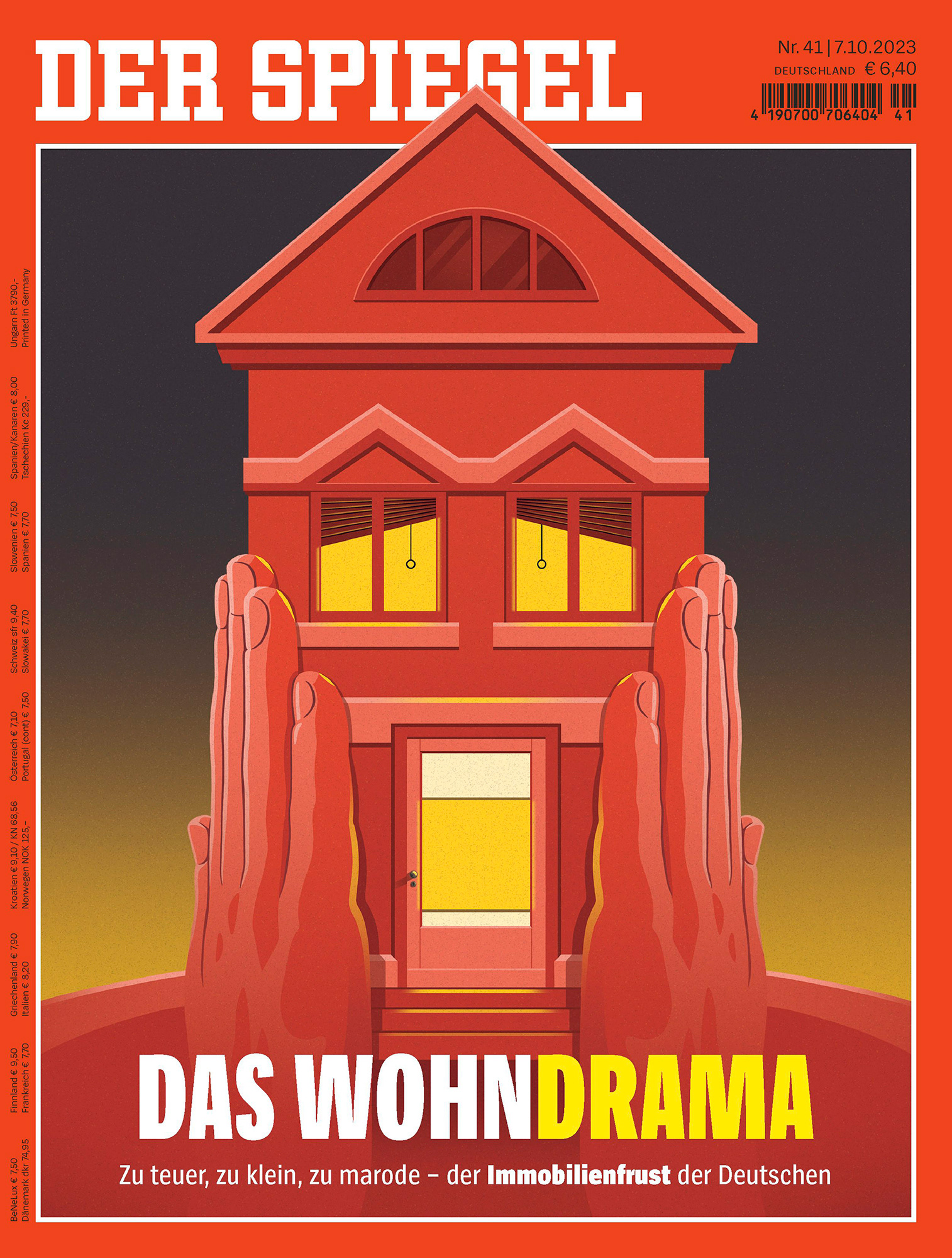 Cover illustration for DER SPIEGEL magazine. Translated as "THE LIVING DRAMA. Too expensive, too small, too dilapidated – the Germans’ real estate frustration."
