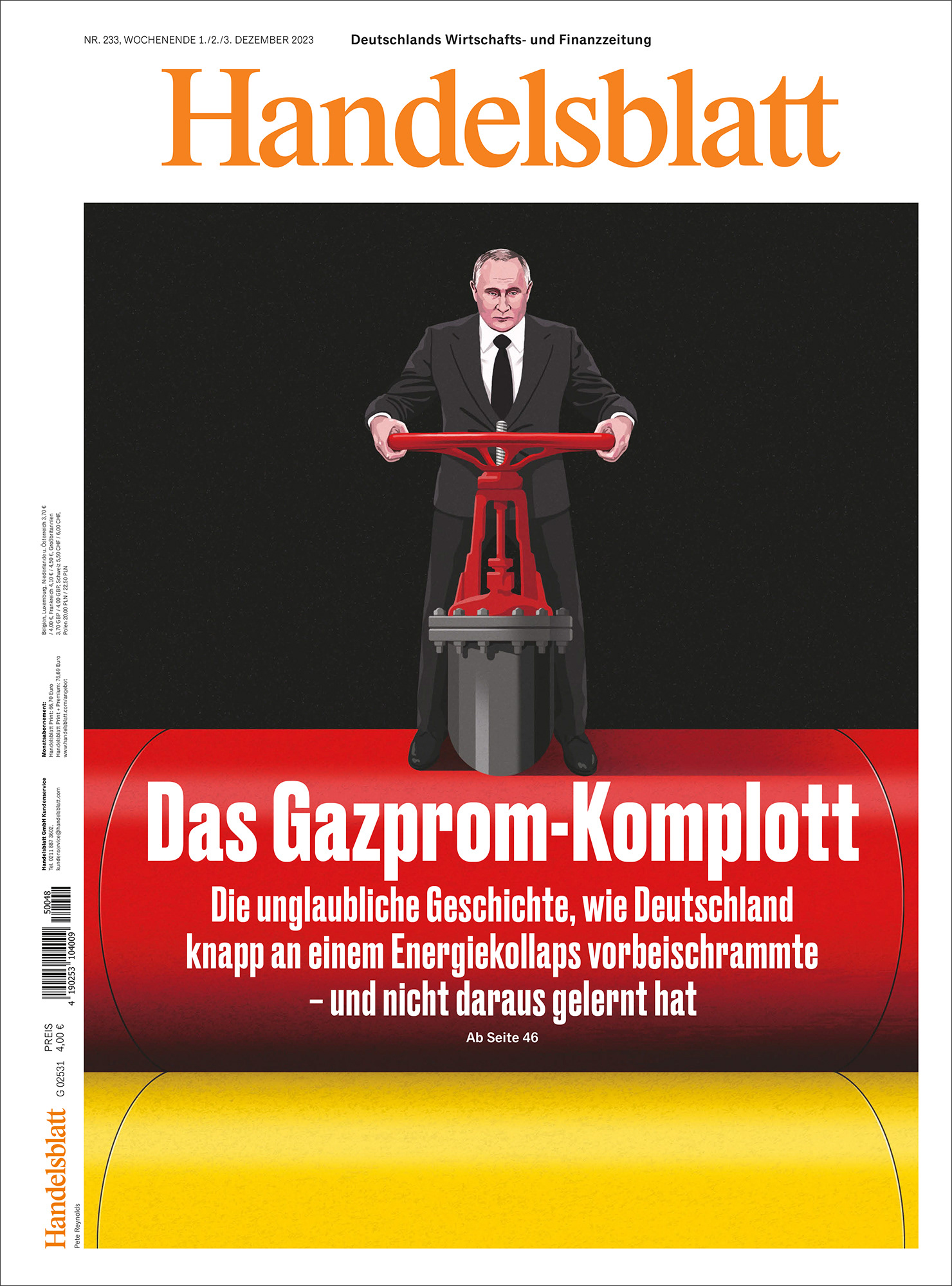 For the cover of Handelsblatt magazine. "The Gazprom Plot. The incredible story of how Germany narrowly missed an energy collapse – and didn’t learn from it."
