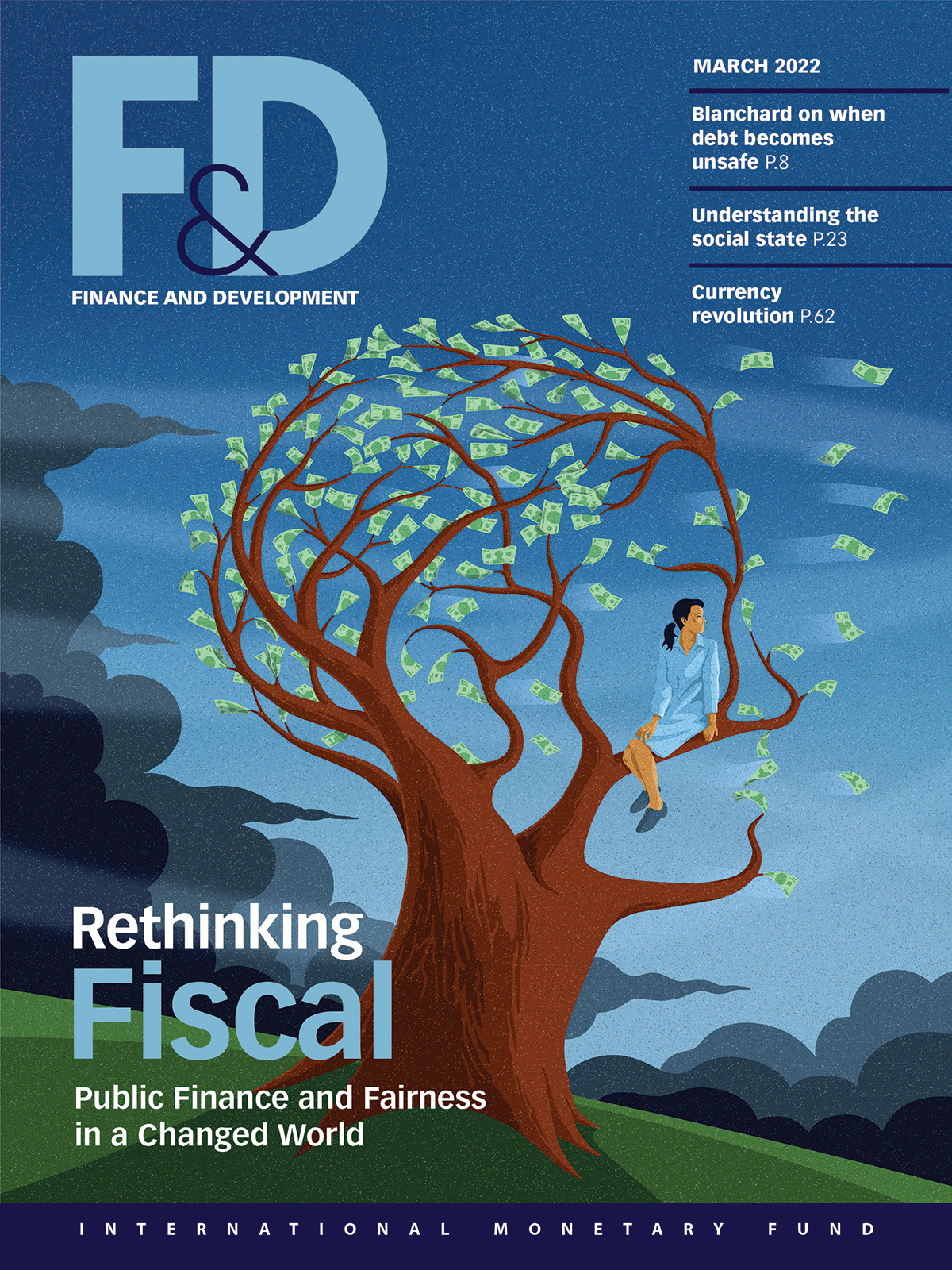 Cover and double-page spread illustrations for F&D magazine for the IMF on 'Rethinking Fiscal – Public Finance and Fairness in a Changing World'.