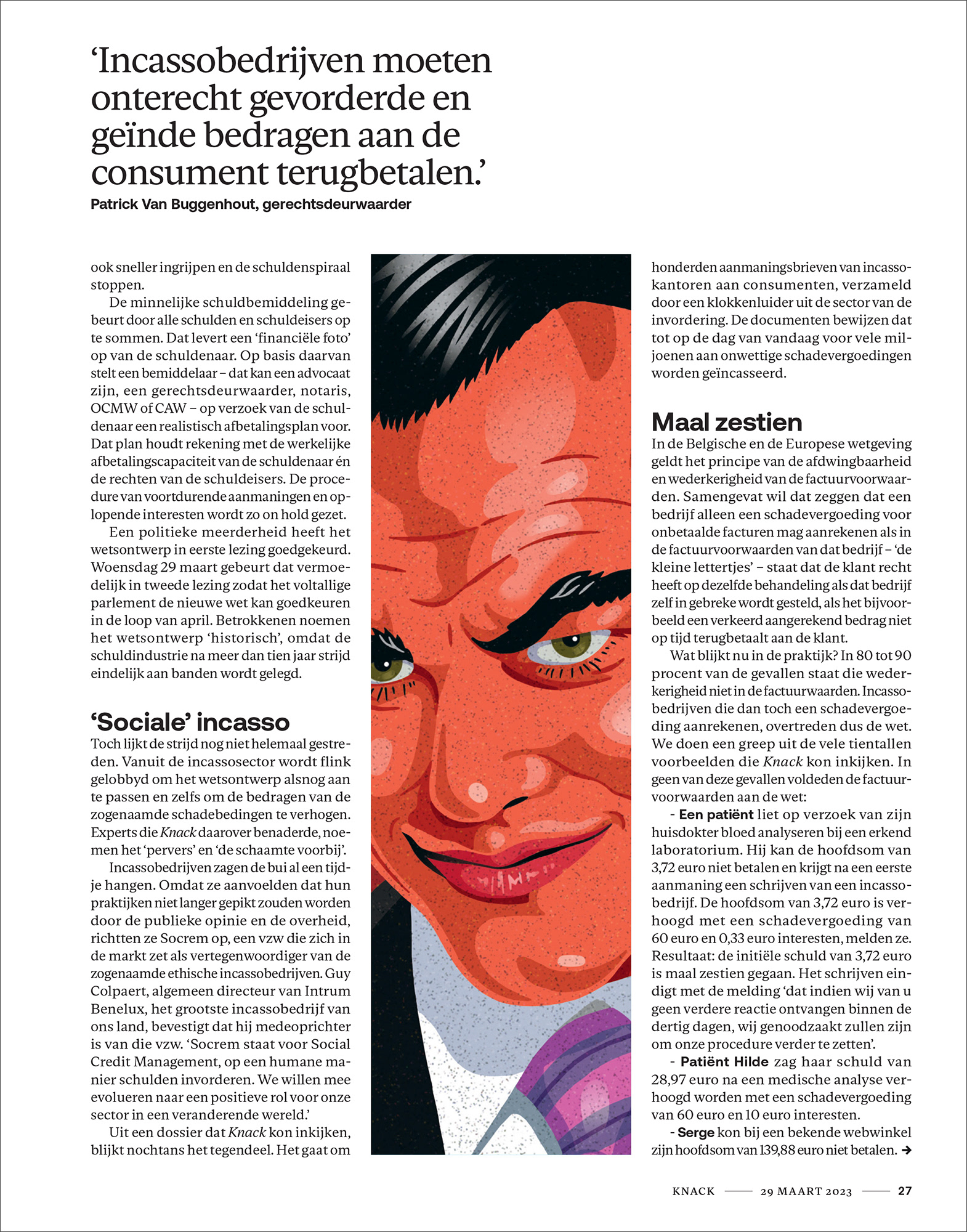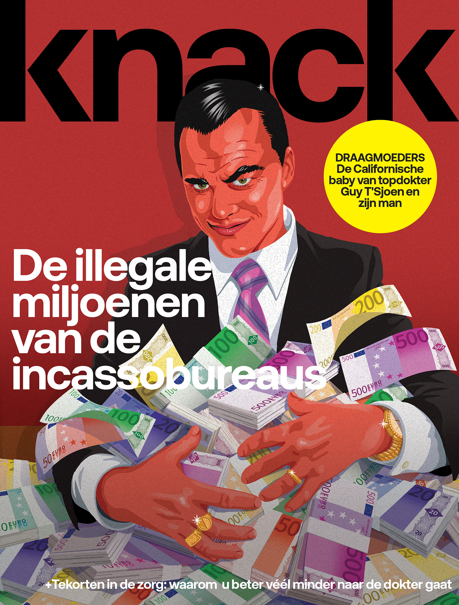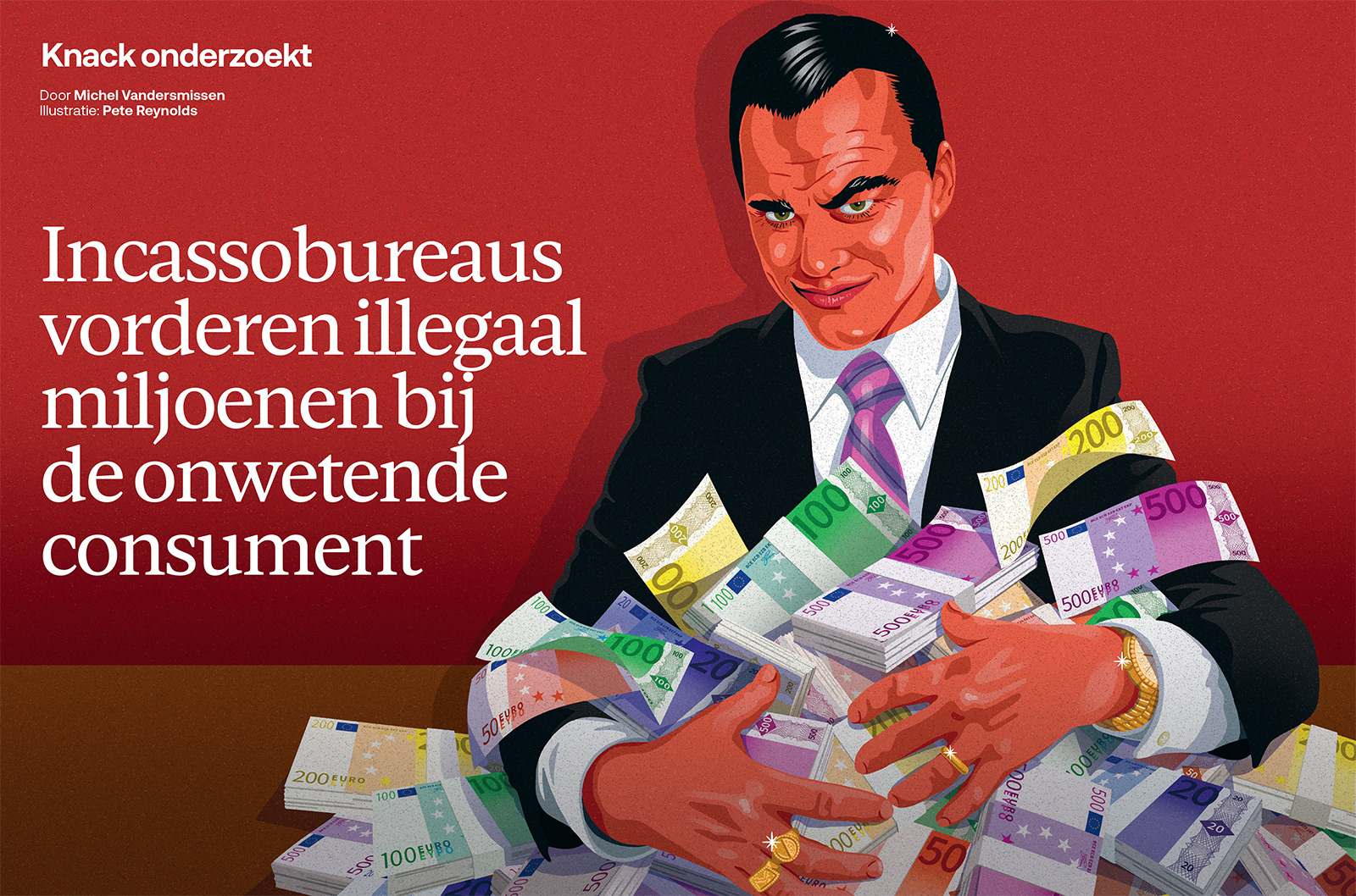 Cover illustration for Knack magazine in Belgium, also used inside for the article. 'The illegal millions from collection agencies'.
