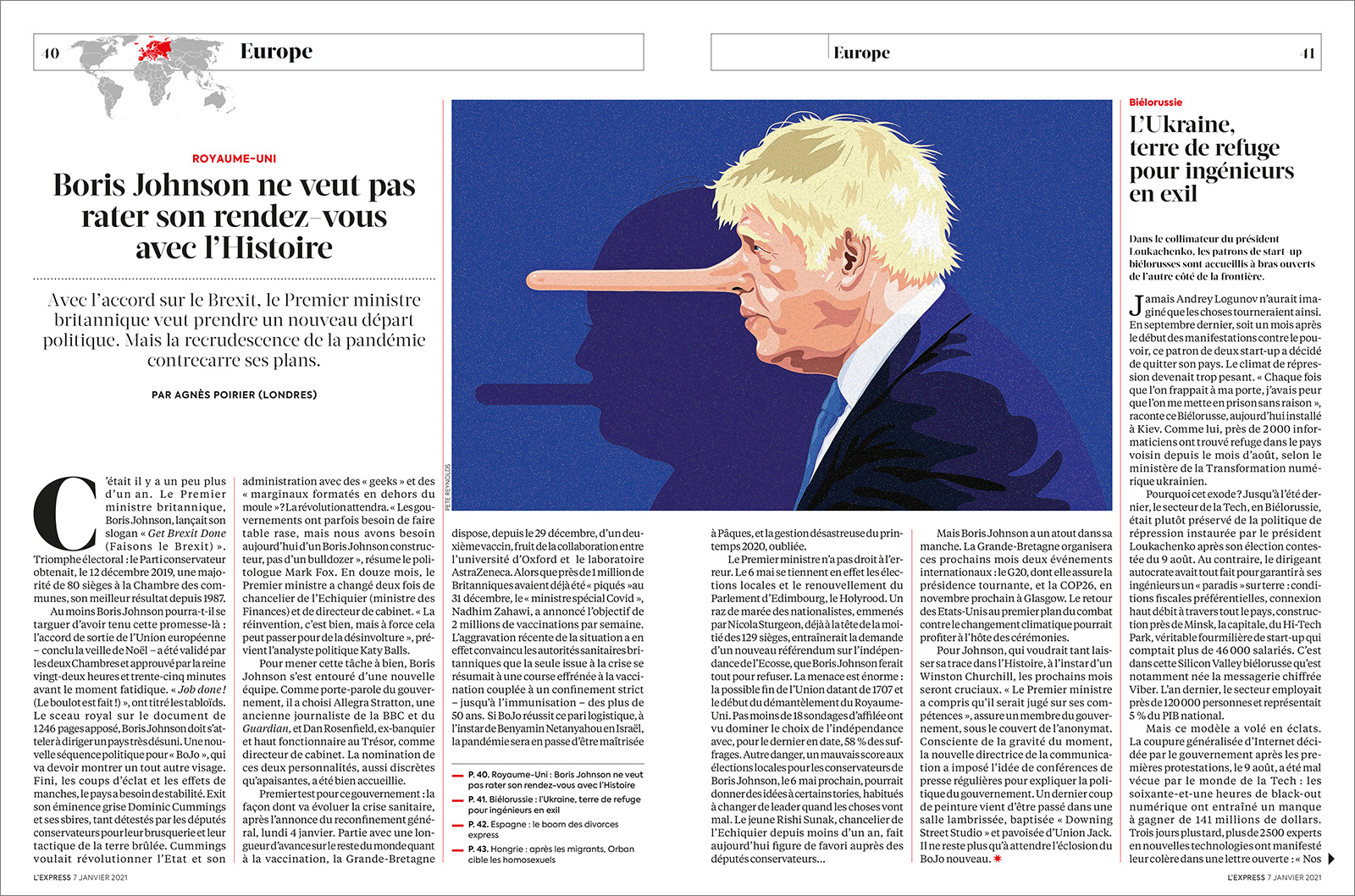 'Boris Johnson does not want to miss his date with history'. An illustration for L'Express magazine in France.