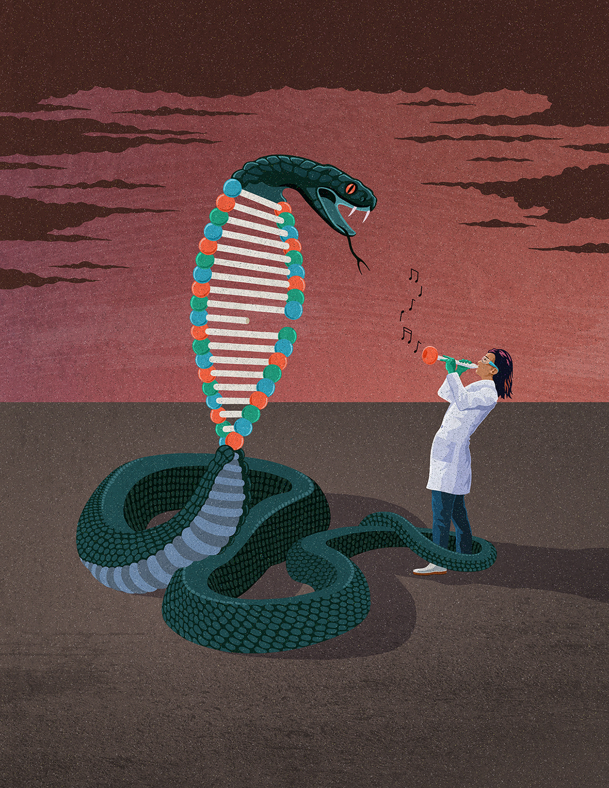 An illustration for New Scientist magazine. 'Gene editing – Making changes to genes with CRISPR has the potential to cure diseases and feed the world, if we can learn to control it.'