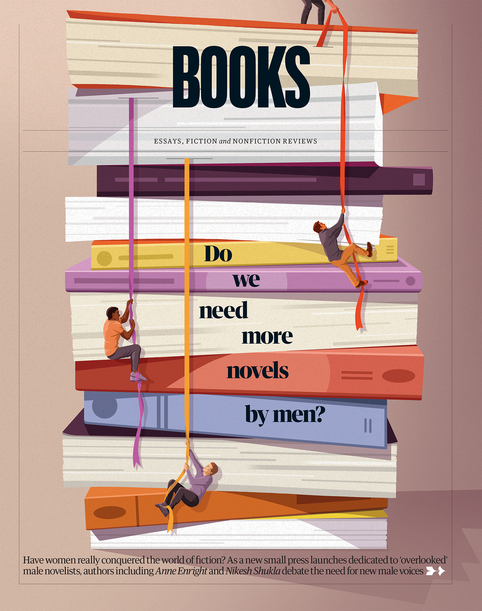 An illustration for the cover of the Books Section in The Guardian Saturday magazine. Asking the question of whether men need more help getting their novels published.
