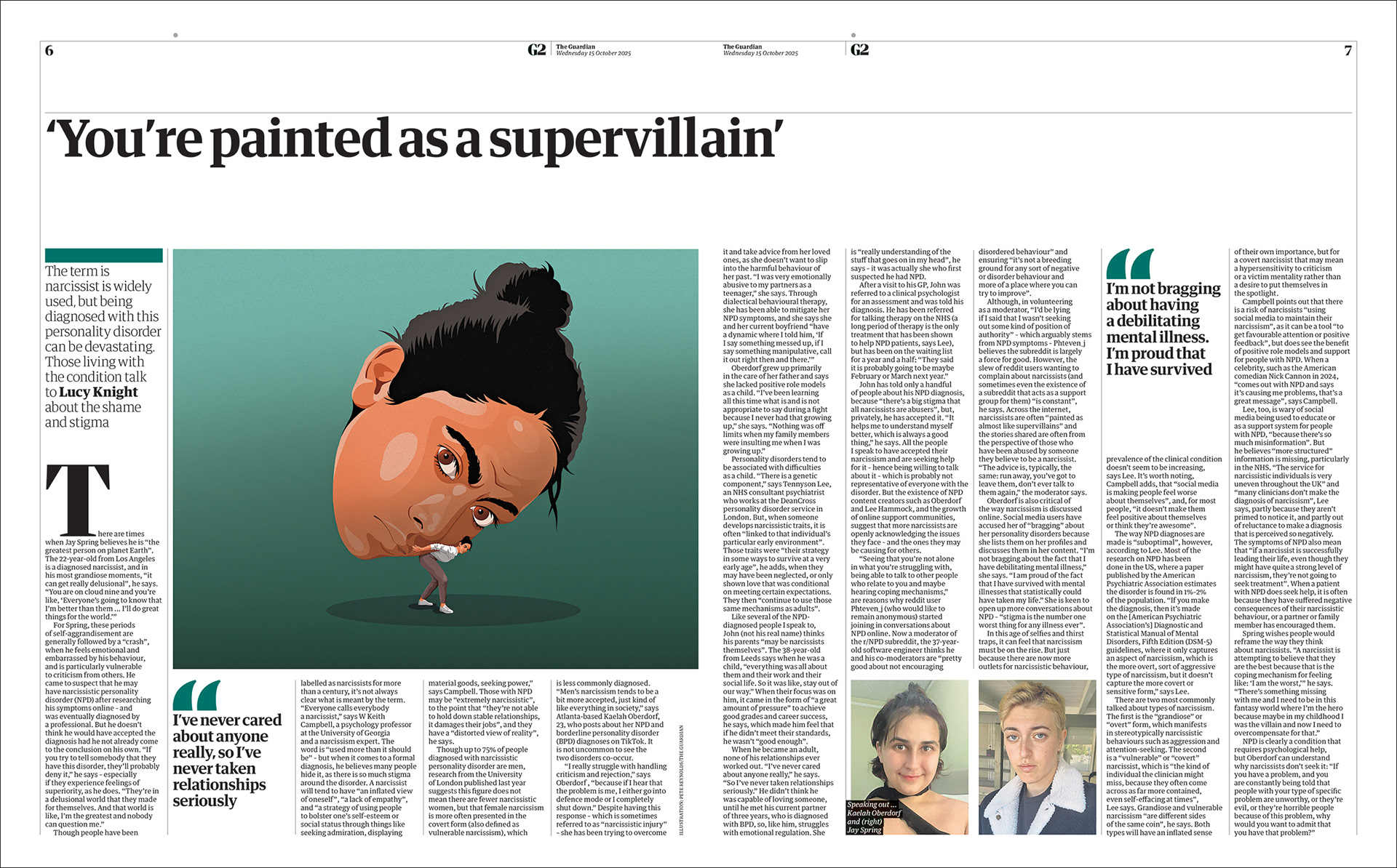 For the Guardian. Two illustrations about the devastating impact of Narcissistic Personality Disorder and the heavy burden of this misunderstood condition.
