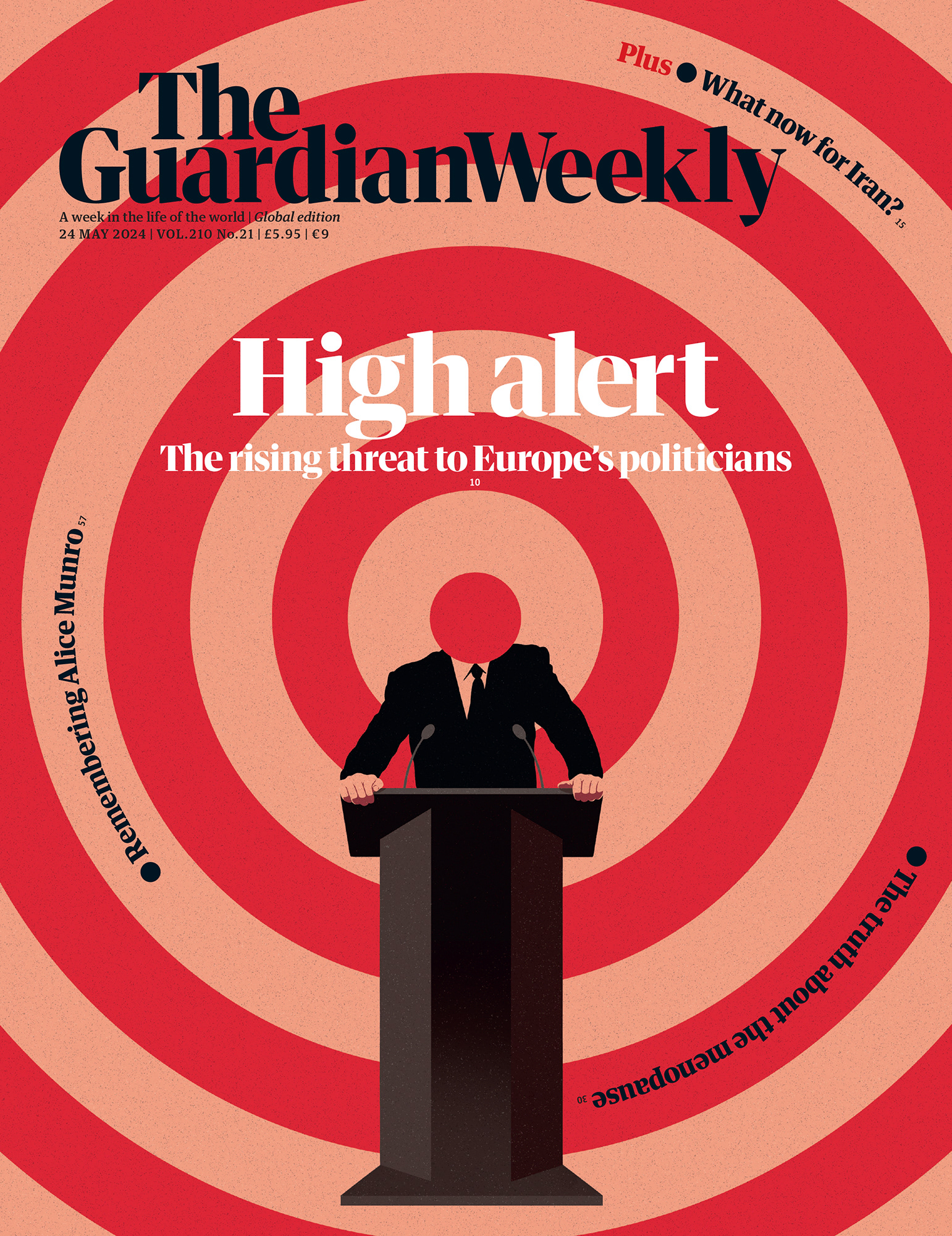 Illustration for the cover of The Guardian Weekly magazine looking at the troubling new wave of violence, both verbal and physical, which has targeted politicians across Europe.