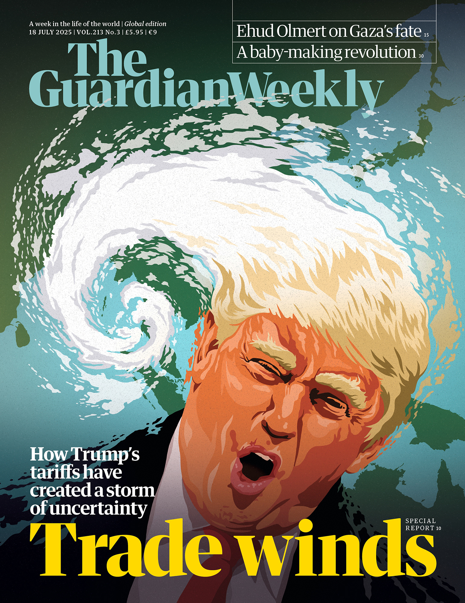 For cover of The Guardian Weekly magazine. "Trade Winds" A special report about the damaging impact of Trump's trade wars.