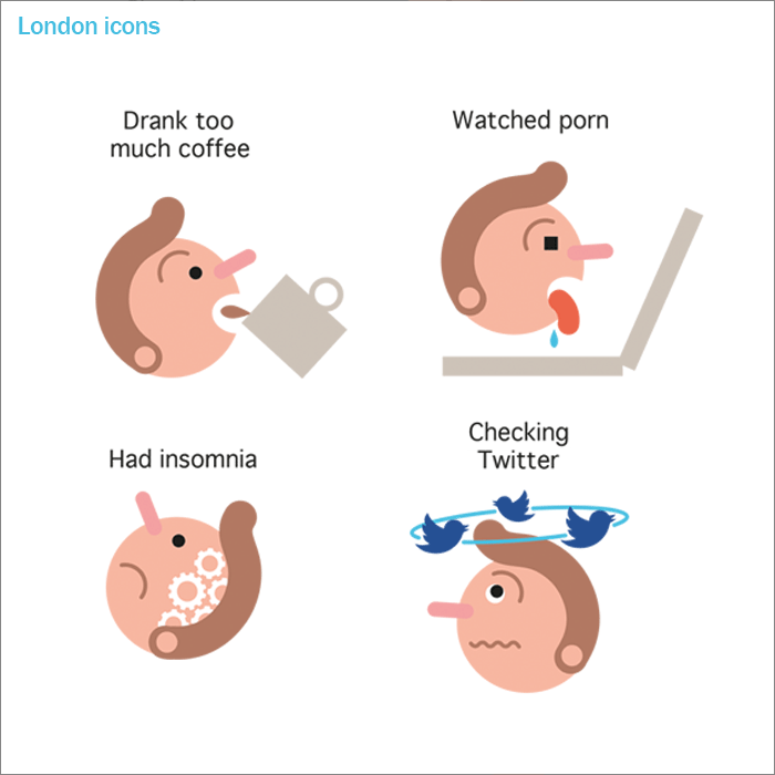 Illustrations and icons to populate 9 pages of TimeOut London's City Living Survey.